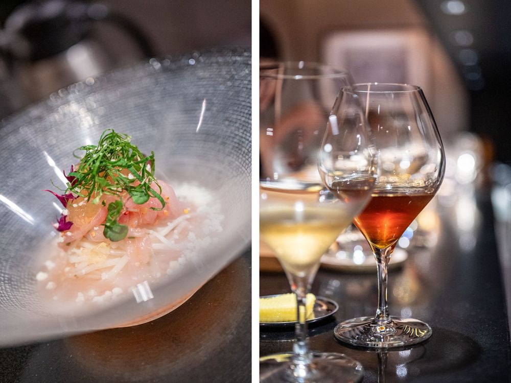 The format was simple and intimate. Eight guests seated at the bar watched Jake and Treyna work in tandem, each course arriving with its own cocktail, designed not just to accompany but to complete the dish. Jake's plates showcased French technique with Asian ingredients, while Treyna's creations highlighted Asian botanicals and spirits that echoed the kitchen's fusion approach.